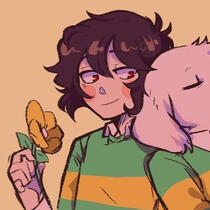 asriel! again, he's just so heccin nice. he's scared, he's afraid, but he's still really loving and loyal. he's not particularly bright, but that doesn't matter 'cus i love him all the same. he's my bro!! literally, he's chara's brother - comfort character